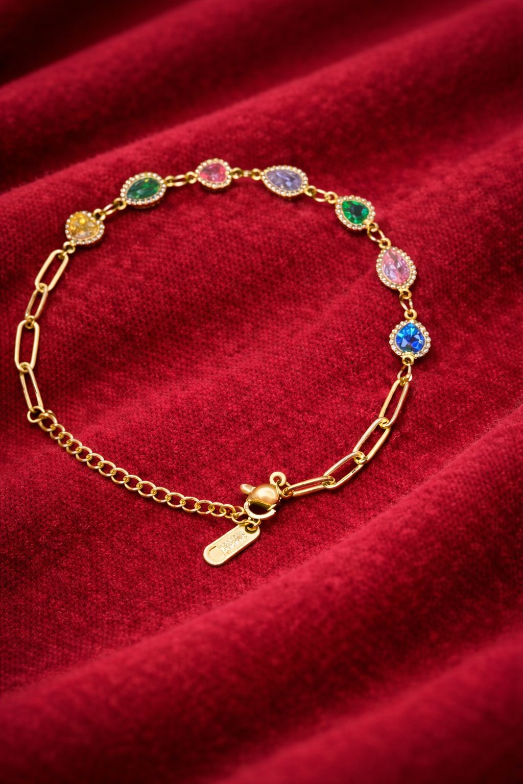 Multicolor Teardrop Crystal Gold Bracelet for Women | Adjustable Party Jewellery